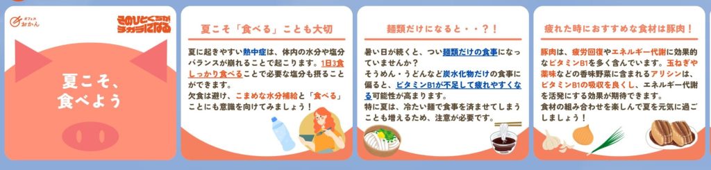 月間チラシ掲載惣菜(食材)などと連動した栄養情報や、食事バランスや季節に合わせたライフスタイルにまつわる情報の発信