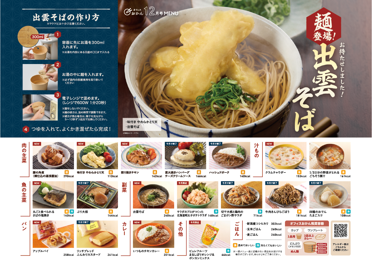 「せっかく社内で食事を用意しても飽きてしまうのではないか?」そんな不安にお答えするように、オフィスおかんは定番商品・季節商品を組み合わせて毎月約20種類の商品を提供しています。